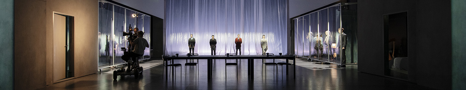 Beskriv så sakligt som möjligt scenkonstverkets olika tecken utan att tolka dess innebörd. I Nationen som är uppdelad i sex olika avsnitt kan det med fördel delas upp i sex olika delar. Dela upp beskrivningen i rummet och i karaktärer.