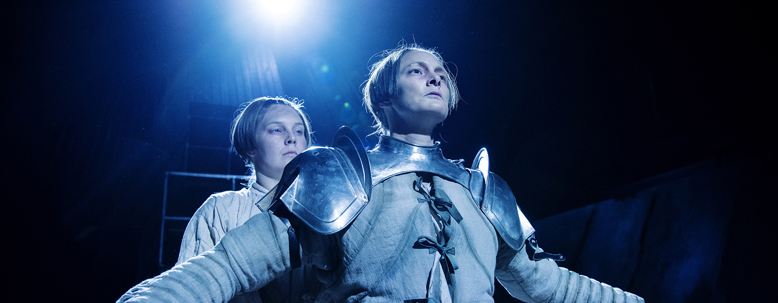 På slagfältet leder hon sin armé för att kröna den franske prinsen Karl. Hon är Guds krigare, La Pucelle, Jungfrun från Orléans.