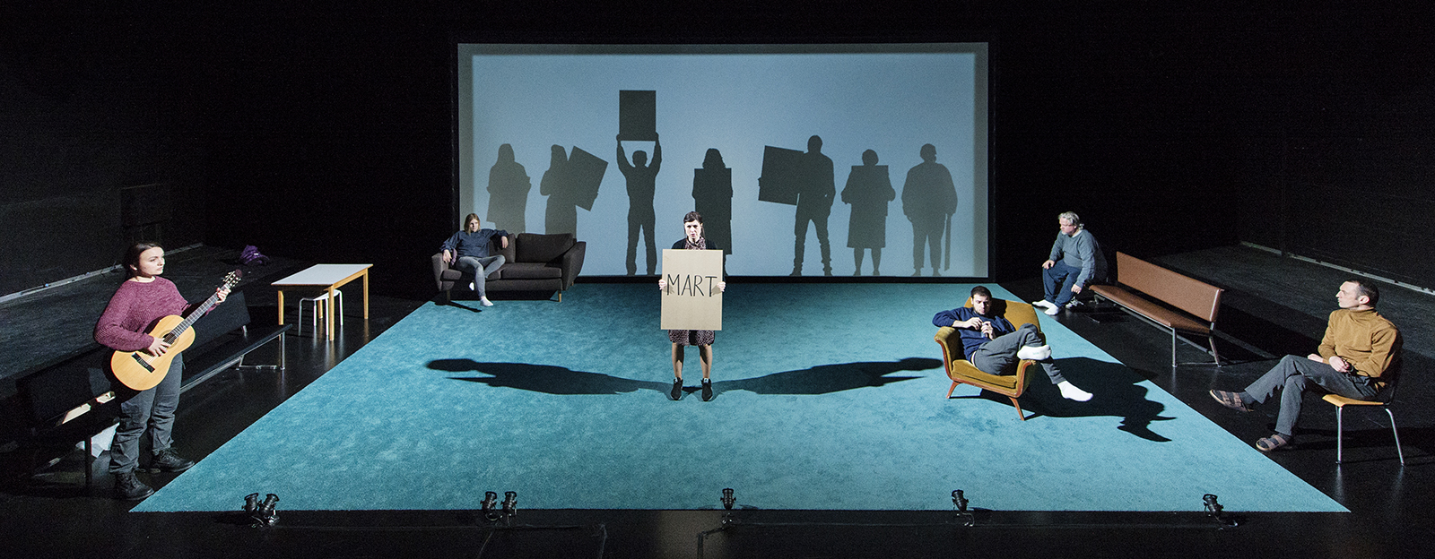 Skuggorna av Mart är en nyskriven pjäs av Mattias Andersson, starkt inspirerad av Stig Dagermans Skuggan av Mart. Vi möter tre människor som är ingenting. De drömmer om att göra ett bestående avtryck på jorden. Det finns inget värre än att vara feg och ful. Eller att leva i skuggan av en ”Mart”.