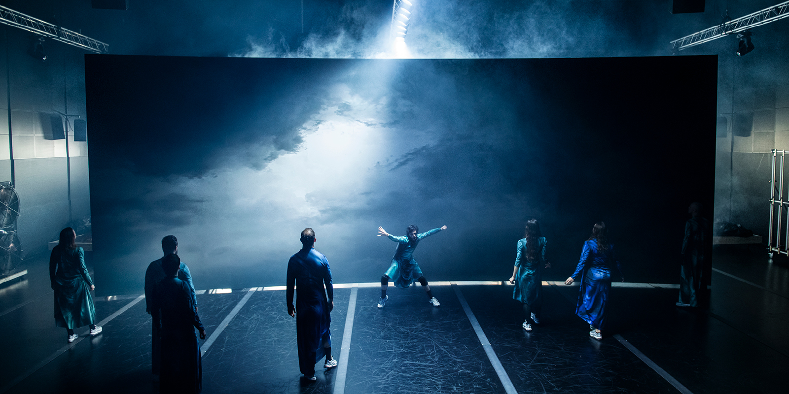 I Örjan Anderssons koreografi utforskas den mänskliga fallhöjden i en storslagen scenografi – där gränsen mellan dans och teater upplöses. En generös, lekfull och ­­kreativ röra om att färdas från Troja till Ithaka, från det ena till det andra – eller tvärtom.