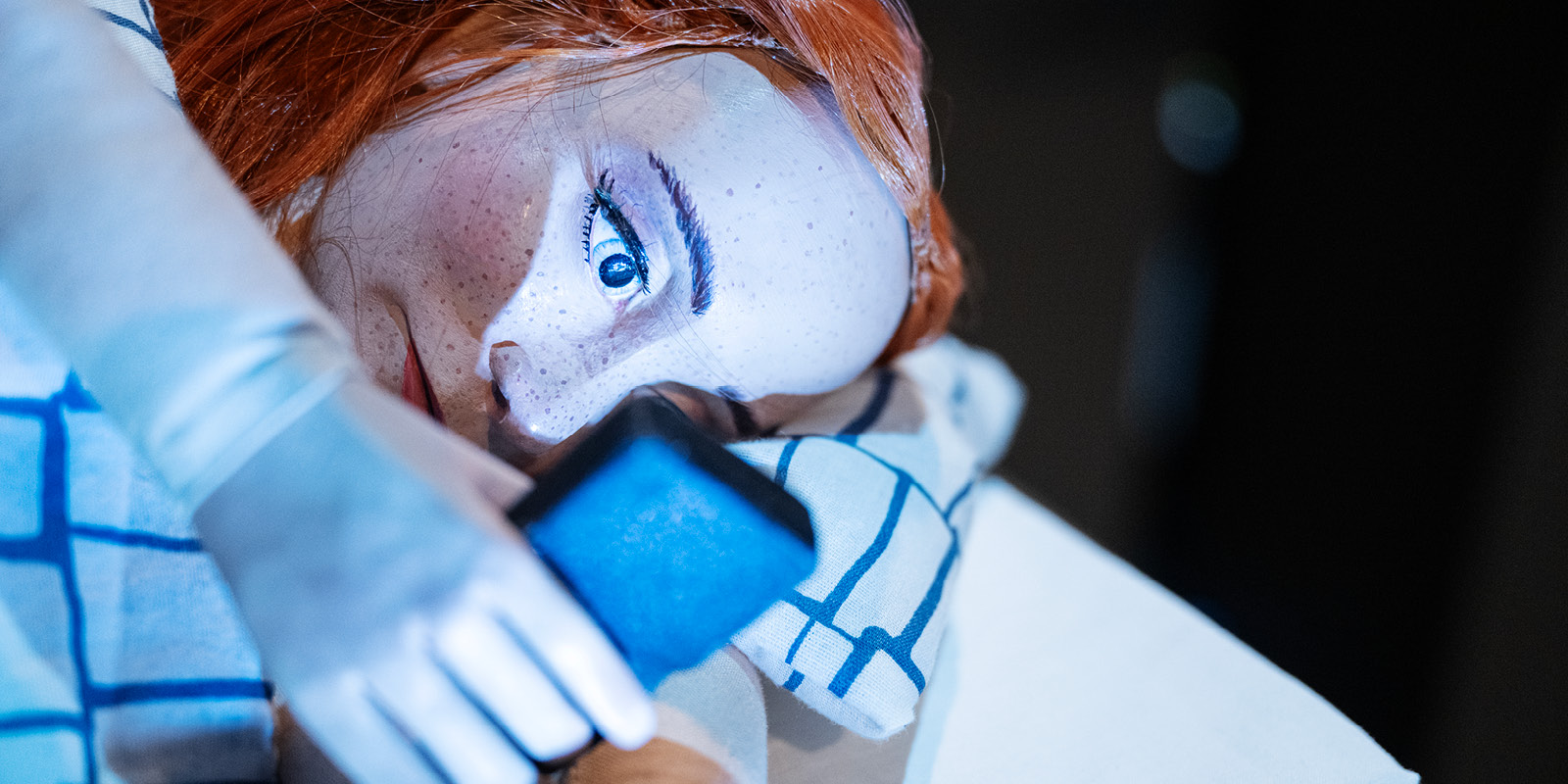 Jag har arbetat med dockteater till och från i många år, och jag upphör aldrig att förbluffas över mediet. En docka lever inte om den inte ges liv av sin dockspelare. På det sättet blir livet i dockan väldigt påtagligt. Men samtidigt blir den materiella aspekten av livets skeenden – kroppen som materia – märkligt uppenbar.