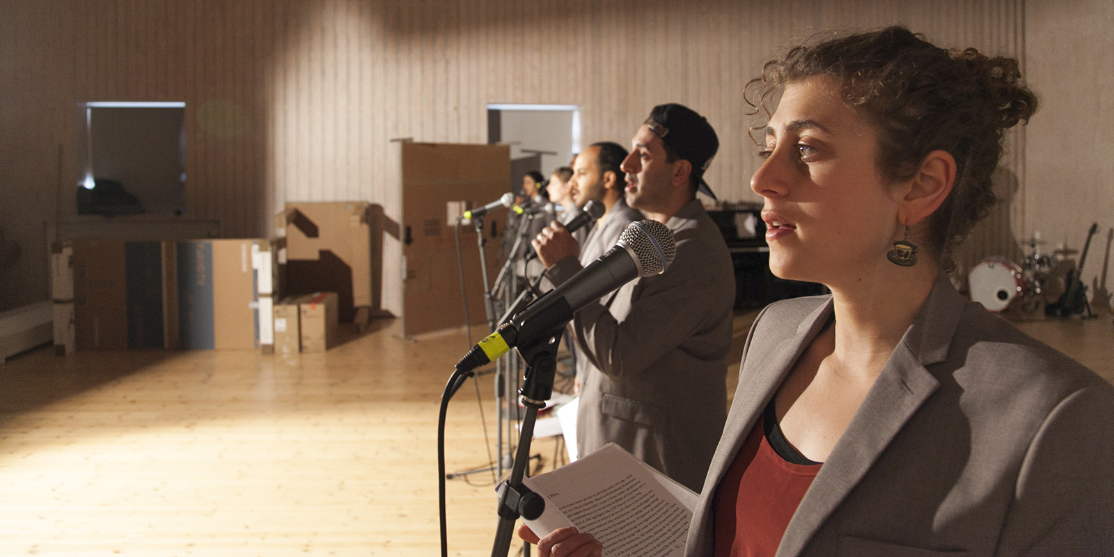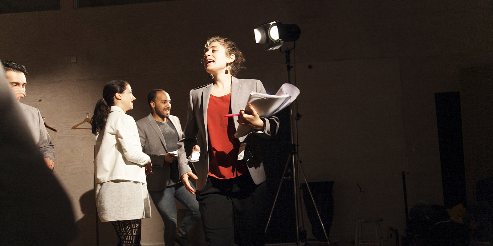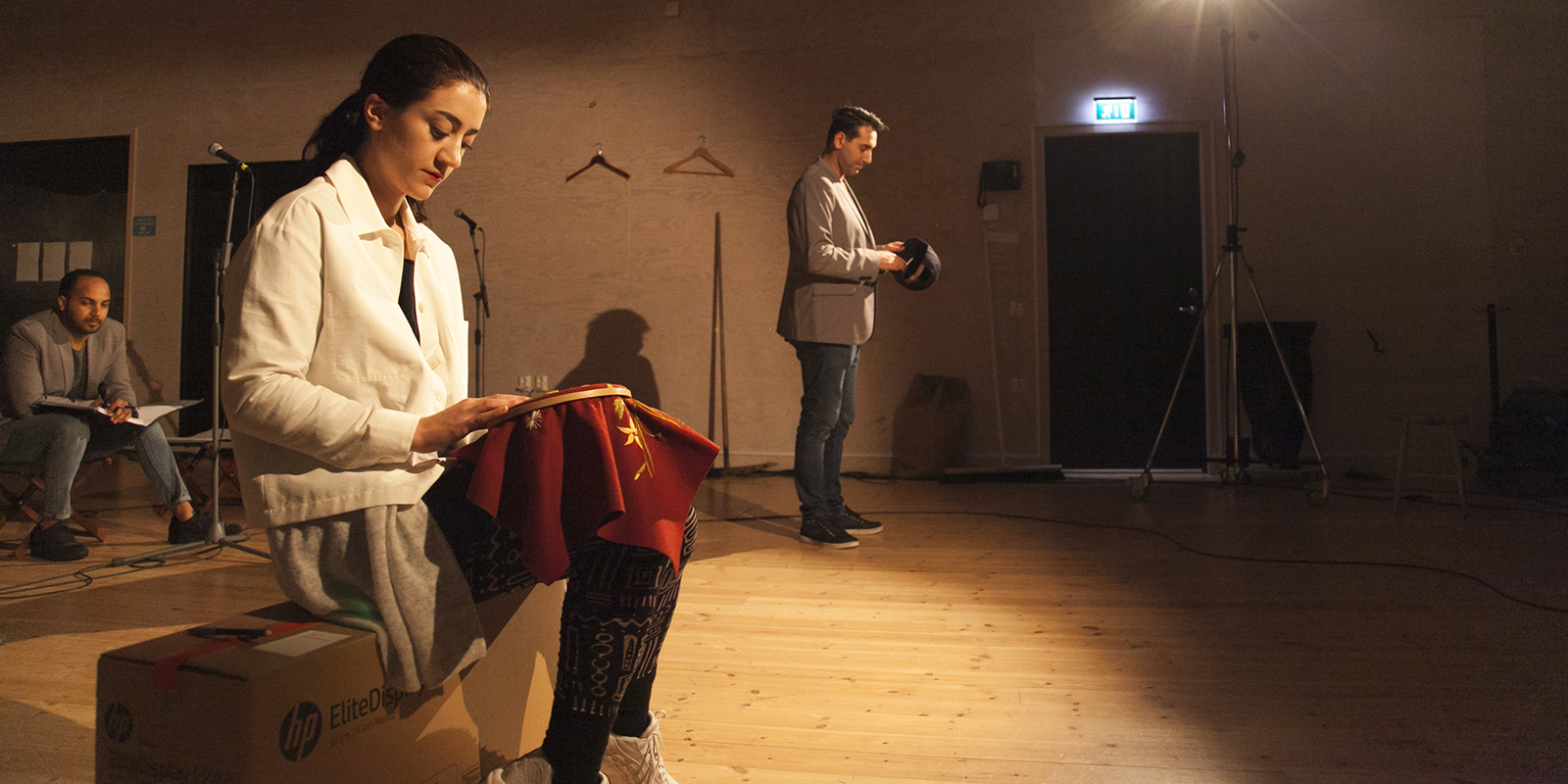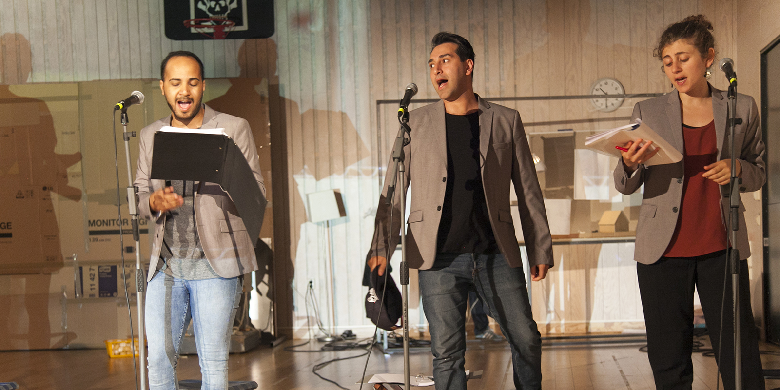 Här ovan ses Magdi Saleh som här på teatern medverkat i Jihadisten och Alexandras Odyssé, i mitten ses Ashkan Ghods som gör Karl-Oskar, han sågs här i Skymningsrök. Kristina Issa längst ut till höger.