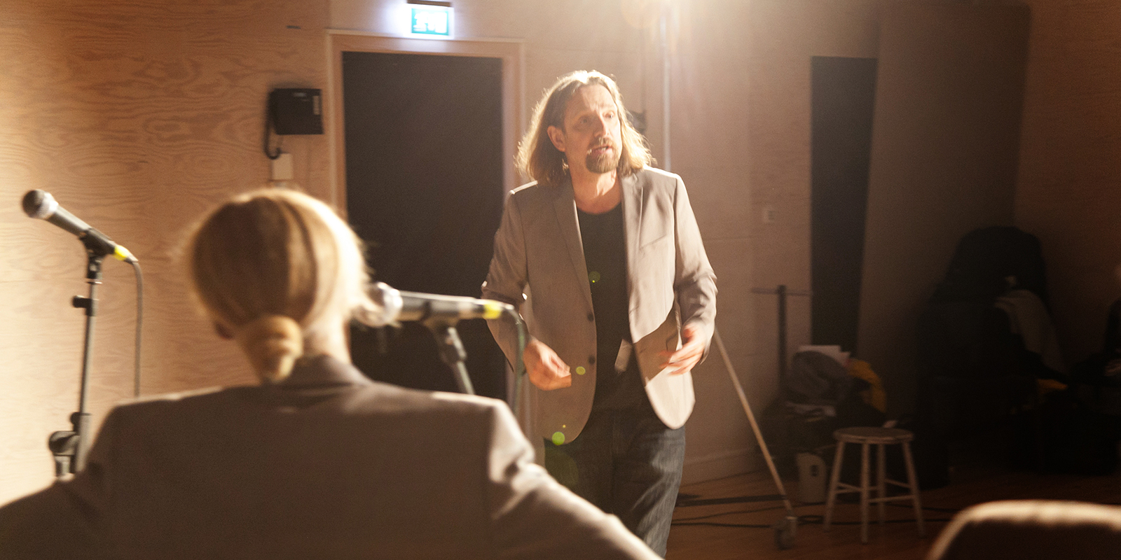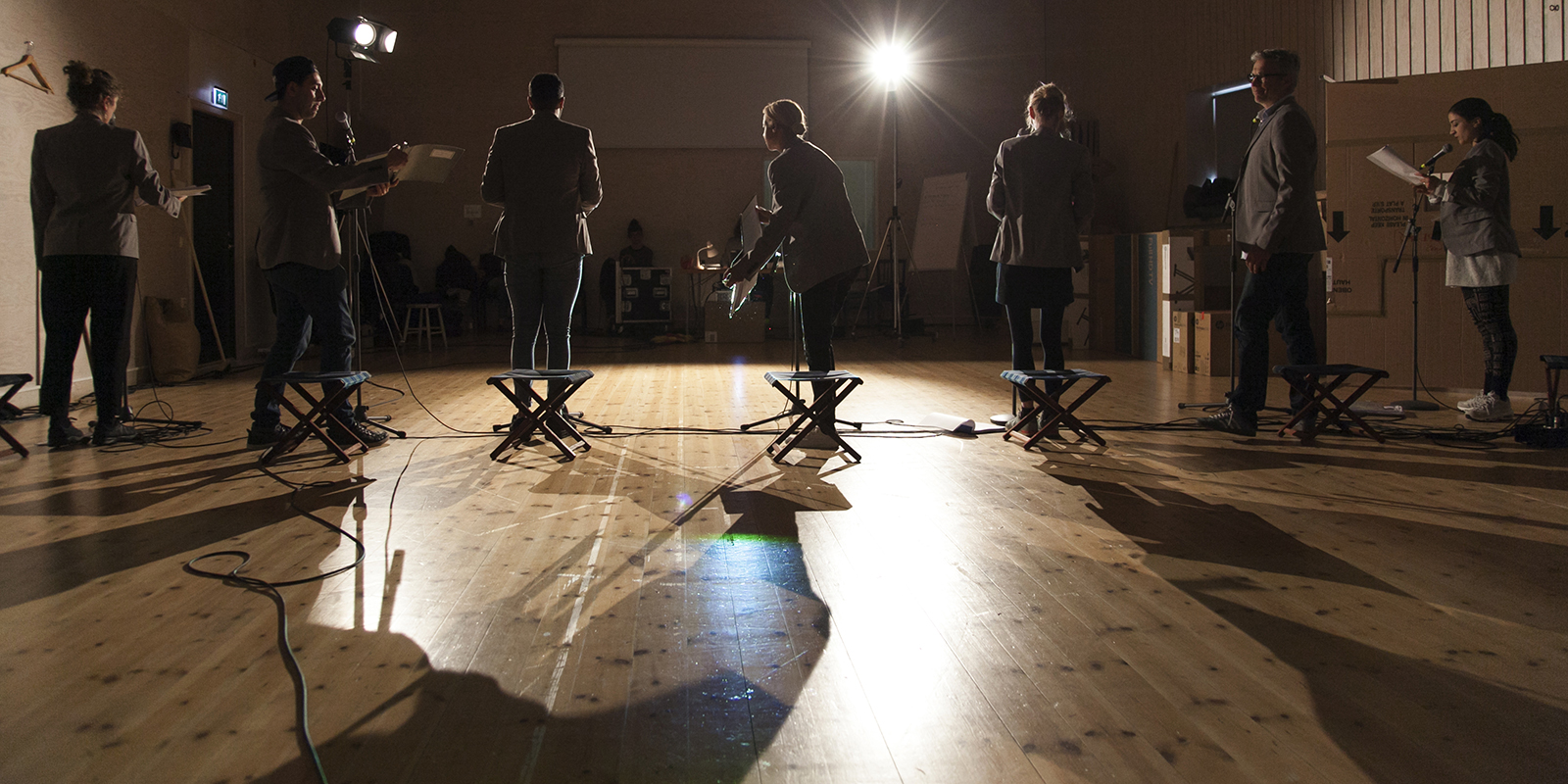 Regissören Pontus Stenshäll instruerar ensemblen. Senast regisserade han Mephisto på Stora Scen.