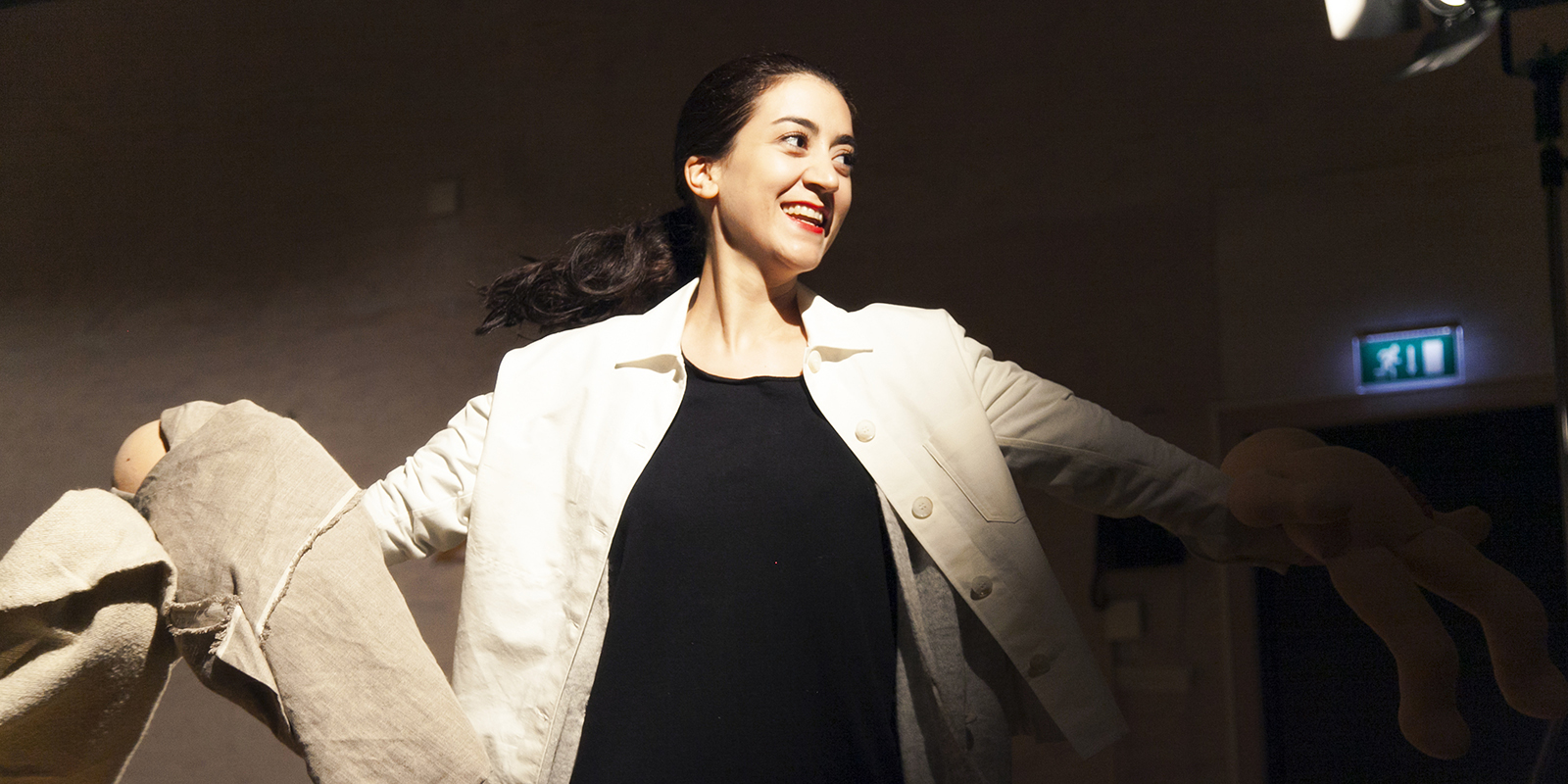 Ovan ses Gizem Erdogan som här på teatern gjorde Alice i Alice i Underlandet i regi av Anna Pettersson. I Utvandrarna gör Gizem rollen som Kristina.