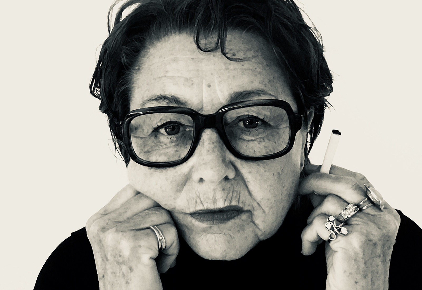 Caria Boberg efter förvandlingen av maskör Ingela Collin när hon gestaltar Marguerite Duras. (foto: Emilie Strandberg)