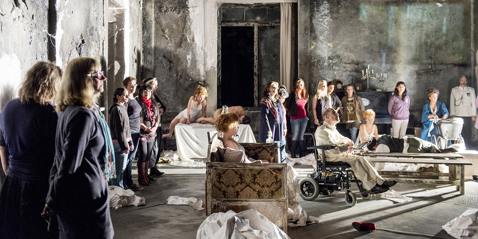 – Manuset till Slutspel säger ingenting specifikt om vilket rum vi befinner oss i: den enda beskrivningen som finns är att det finns två fönster och en ingång men vi vet inte om det är ett hus, en bunker eller en källare.