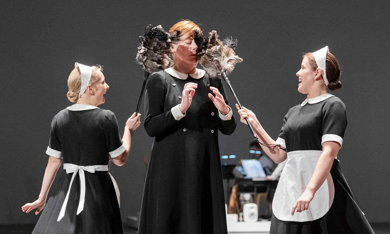 Carina M Johansson som Första damen omgiven av Daniella Hörslykke och Matilde Holmstrup Andersen.