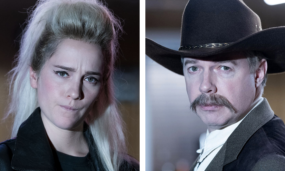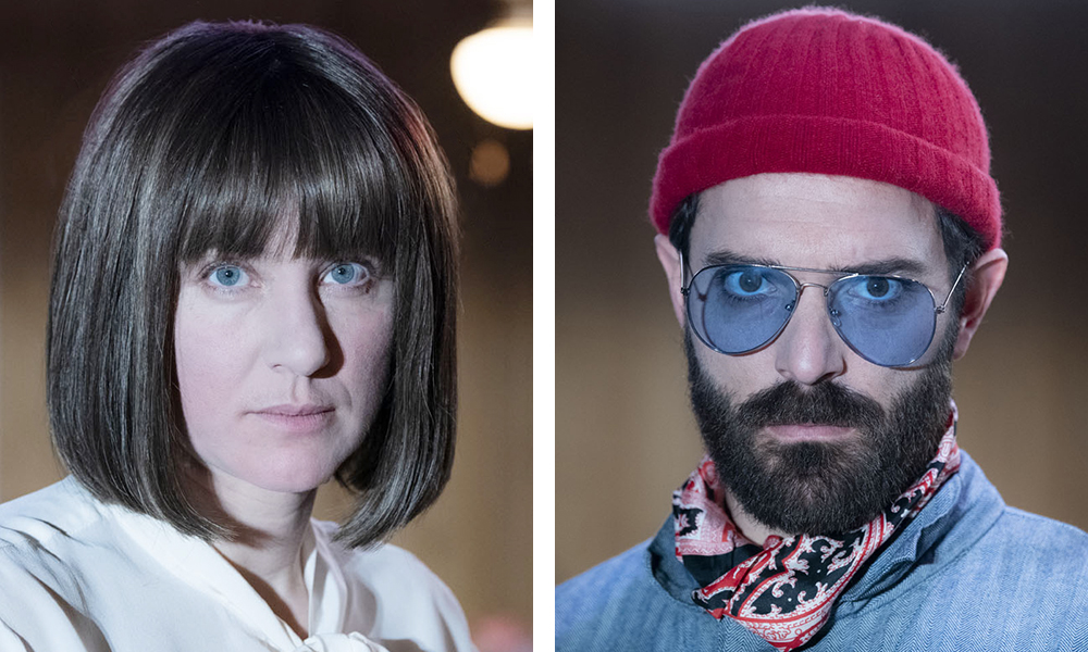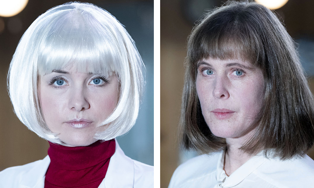 Till vänster: Dr. Gerber (Josefin Ljungman) – En cynisk plastikkirurg med ovanliga idéer om manlighet och yttre attribut.