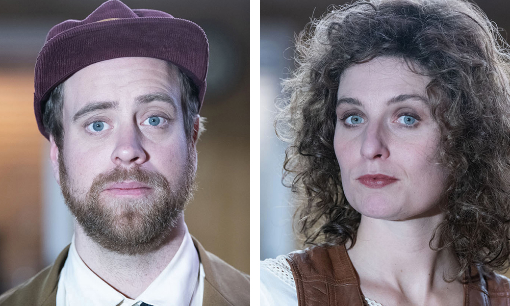 Till höger: Leni (Emilie Strandberg) – En bekymrad hustru som älskar sin Schmitz men vill att hen sätter ner foten.