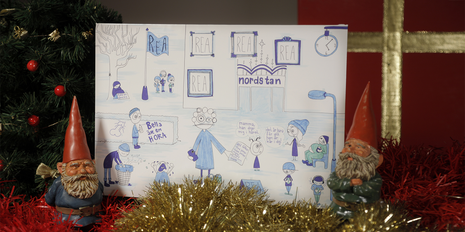 Julkalendern i sin fysiska form. Foto: Peter Buchschatz.