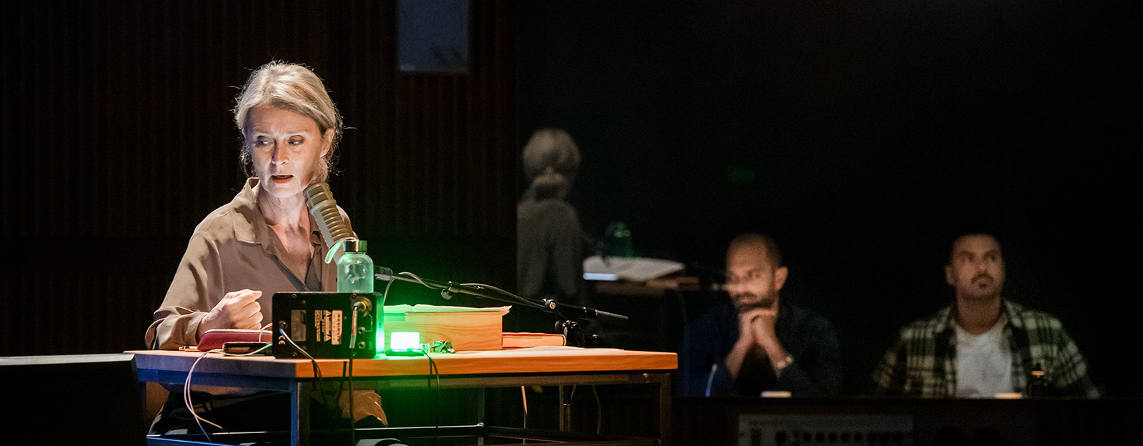 Men föreställningen är mer än en politisk diskussion. Den är ett lysande exempel på den regi som Ostermeier blivit känd för – förrädiskt enkel, intellektuellt knivskarp och med fingret i luften. Dramat utspelar sig i en ljudstudio dit Lena Endre, i egenskap av sig själv, har kommit för att spela in en voice-over till en dokumentär. Dokumentären regisseras av en ung filmskapare, spelad av Jesper Söderblom, och följer Eribons resa till Reims och mötet med hans mor, precis som i romanen. Med i ljudstudion finns också en ljudtekniker, spelad av Parham Pazooki, och ju längre de kommer i sitt arbete desto fler frågor väcks kring dokumentärens framställning av den politiska samtiden. De tre besitter olika positioner i samhället och det blir uppenbart att de inte delar samma bild av verkligheten. Ett metadrama tar långsamt form.