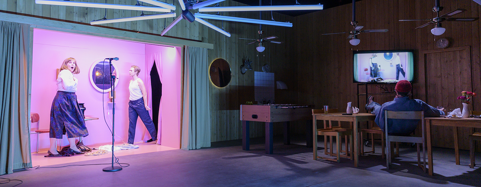 Boka TeatermiddagAv Lukas Bärfuss Översättning Marc Matthiesen Regi Ildikó Gáspár Skådespelare Victoria Dyrstad, Fredrik Evers, Karin de Frumerie, Josefin Ljungman, Ylva Olaison, Emilie Strandberg, Jesper Söderblom, Carl-Markus Wickström Scenografi och kostym Lili Izsák Mask Katrin Lind Ljusdesign Tamás Bányai Ljud Marcus Lilja Video András Juhász Musik Tamás Matkó Dramaturg Joel Nordström