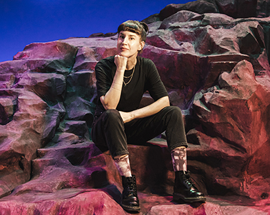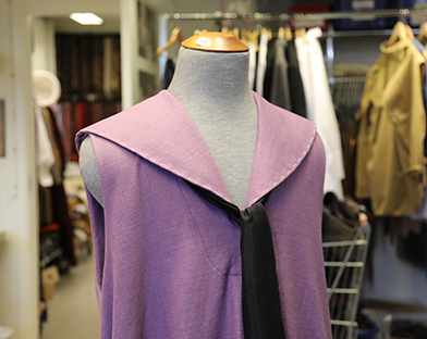 Vi hälsade på i kostymateljén när Emil Ljungestig, som spelar Joy i The Vivian Girls, provade sin kostym, som är under bearbetning. Det mäts och granskas, nålas och kortas, kläms och snurras.