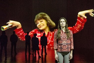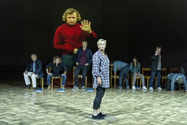 Lisa Lindgren (front), Henric Holmberg, Carina M Johansson, David Rangborg, Carina Boberg, Disa Östrand, Fredrik Evers, Ingvar Hirdwall projektion i fonden
