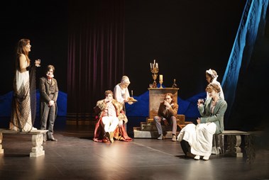 I förgrunden Victoria Olmarker. I bakgrunden Alex Jubell, Victoria Dyrstad, Marta Andersson-Larson. Stående bild. Foto: Ola Kjelbye