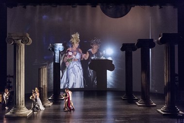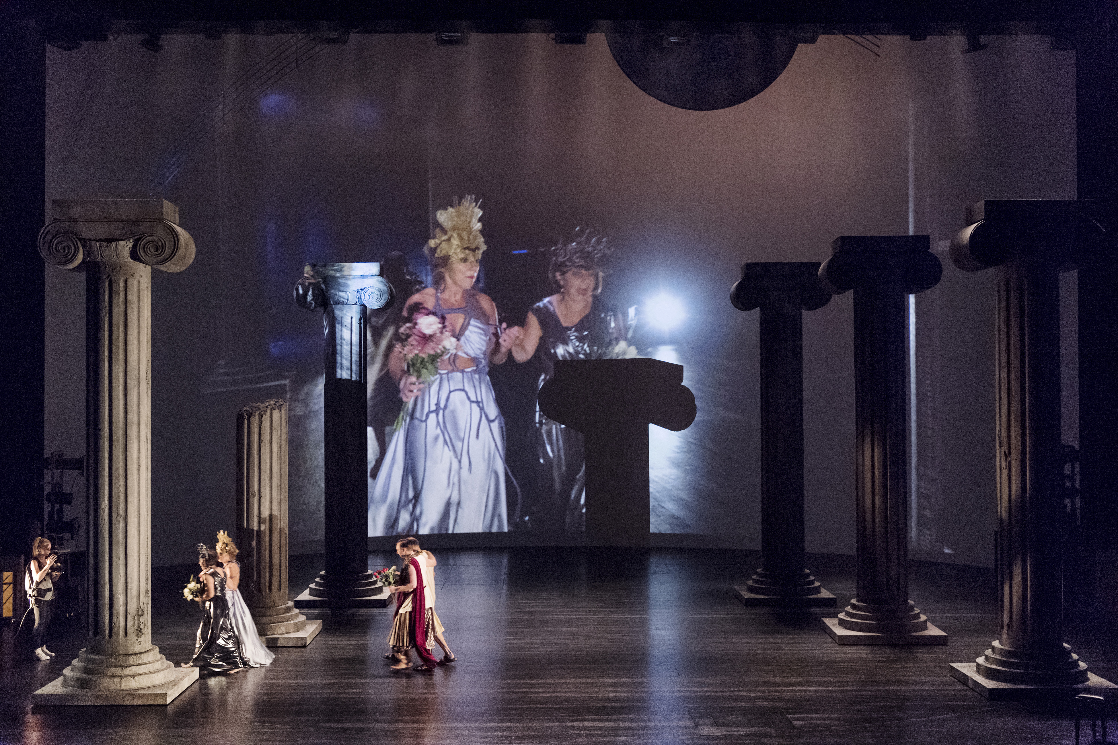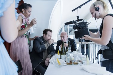 På scen: Carina Boberg, Marie Delleskog, Fredrik Evers, Sven-Åke Gustavsson. På filmduk: Marie Delleskog, Carina Boberg Foto: Ola Kjelbye