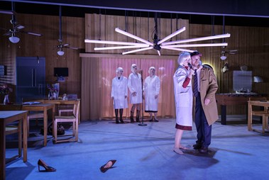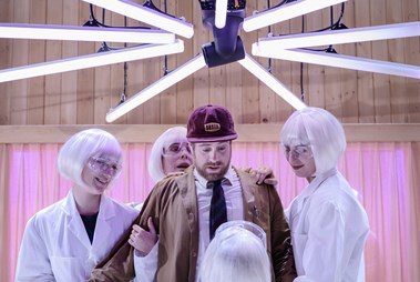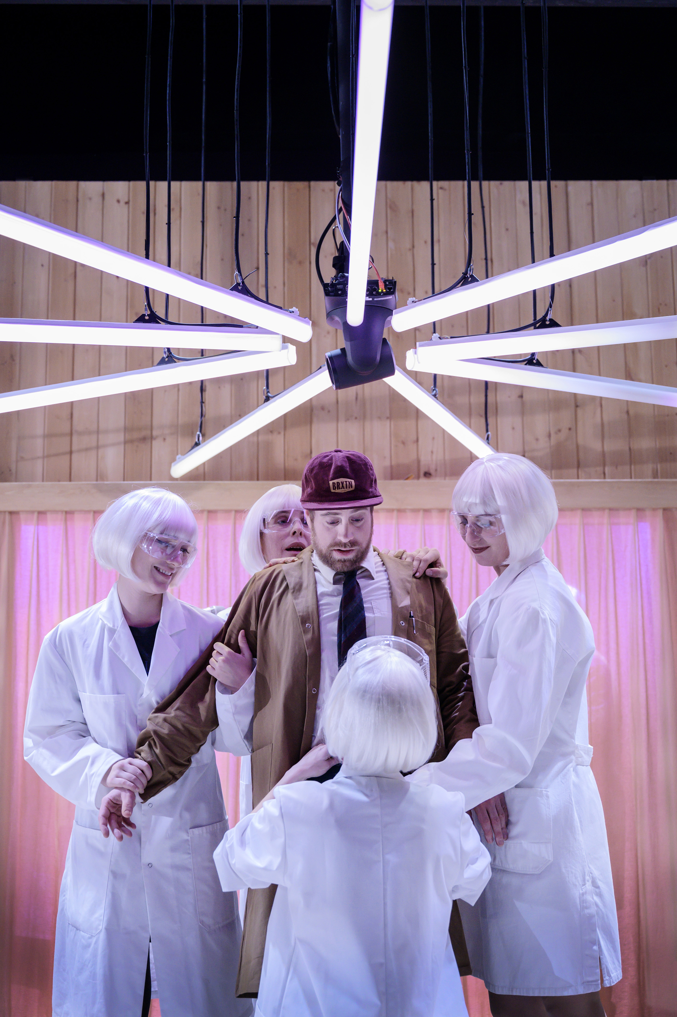 Emilie Strandberg, Josefin Ljungman, Ylva Olaison, Carl-Markus Wickström, Fredrik Evers. Med ryggen mot kameran Karin de Frumerie. Foto: Ola Kjelbye