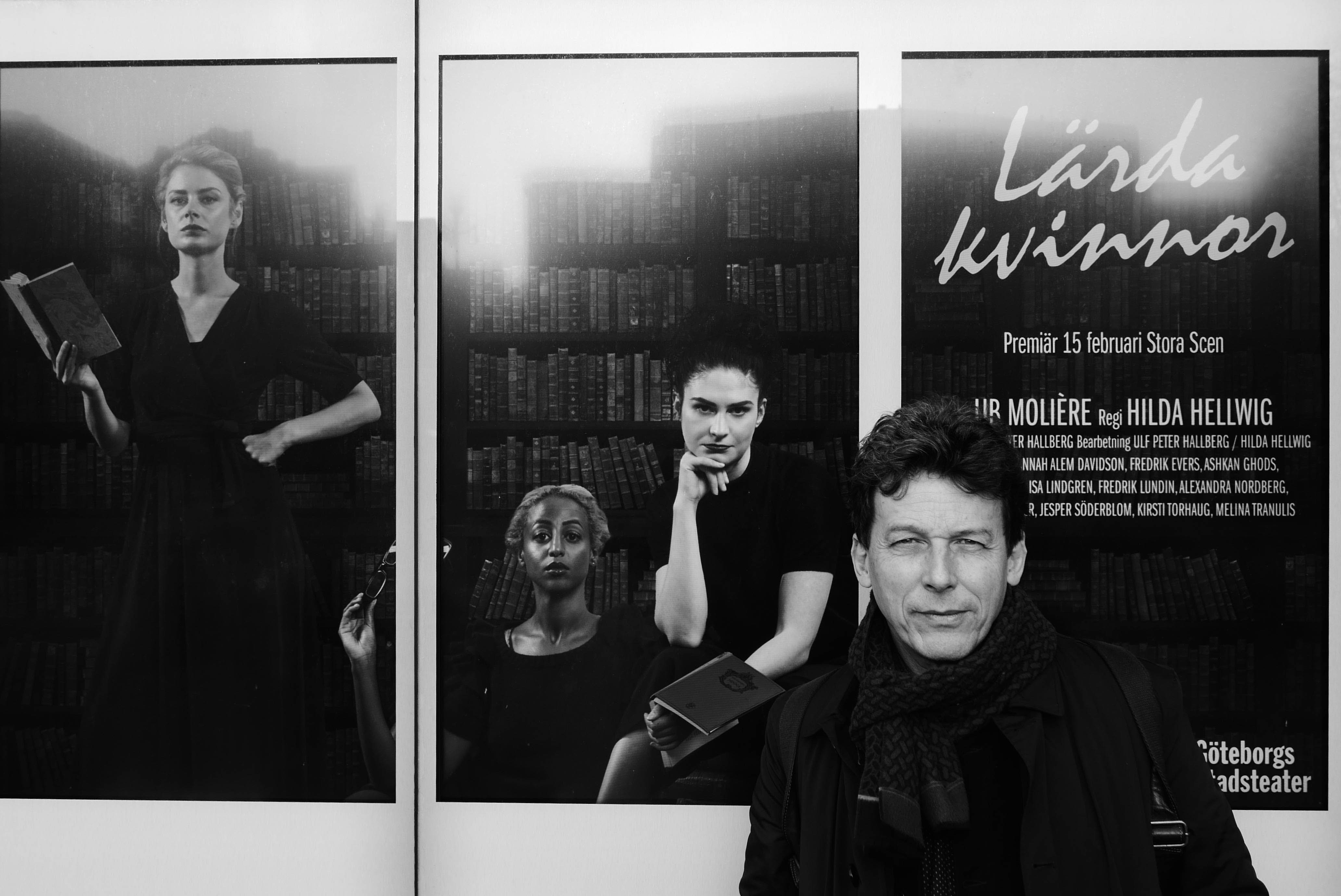 Den franske dramatikern Molière arbetade med två perspektiv i sina komedier. Det ena var att sätta fram människan och mänskliga egenskaper i all sin prakt och skröplighet. Det andra perspektivet var att hänga upp sina berättelser på då levande personer och driva med sin samtid. I Hilda Hellwigs uppsättning "Lärda Kvinnor" har hon arbetat nära översättaren Ulf Peter Hallberg, som också bearbetat och moderniserat handlingen för att uppfylla det andra Molière-kriteriet. Teaterrummet bad Ulf Peter Hallberg reflektera över översättarens uppgift, den historiska texten och den starka aktualiteten i "Lärda kvinnor" mot bakgrund av de senaste två årens händelser som skakat om det stockholmska kulturlivet. /Red.